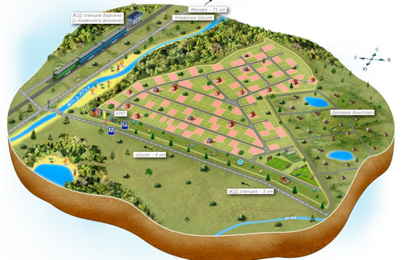Поселок «Аристово» - новое предложение на рынке «дальних дач». Строится он в 71 км к юго-западу от МКАД, в Калужской области. На Киевское шоссе ведет асфальтированная дорога, от расположенной в пяти километрах ж/д станции ходят маршрутные такси.