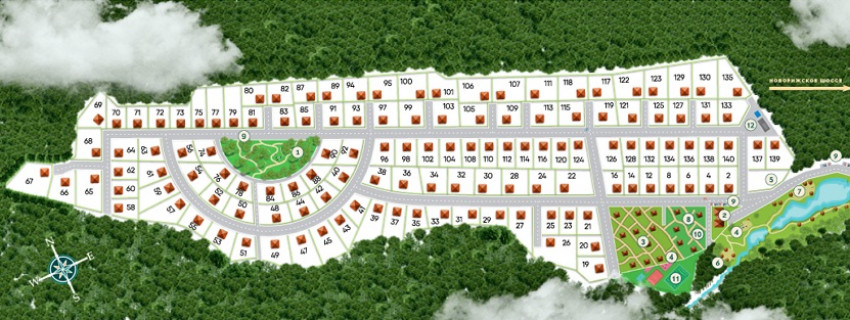 Поселок компактный, с очень удобным расположением улиц. Точно не заблудишься! И участки от 9 соток! Можно и дом большой поставить и сад разбить.
