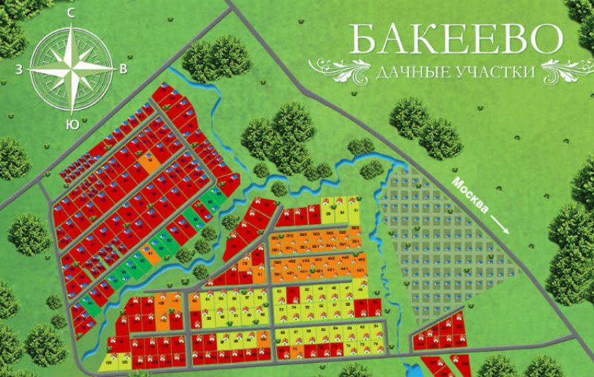 Подводится электричество из расчета 10 кВт на каждый участок «Бакеево», прокладываются внутренние дороги. Запланировано строительство гостевого наземного паркинга и игровой площадки для детей.