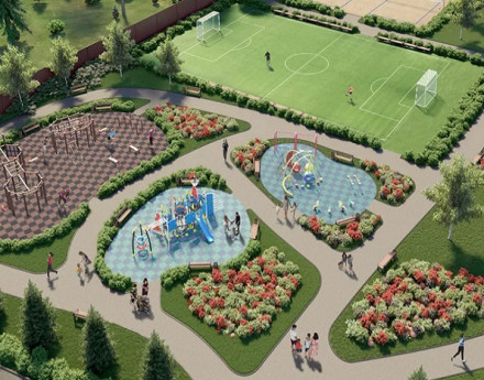 Поселок огорожен, работает охрана. На берегу имеющегося на территории природного водоема, оборудуется пляж и зона отдыха. Предусмотрены спортивные и игровые площадки, административное здание, гостевой паркинг. «Изюминкой» же нового поселка станет большой фруктовый сад с прогулочными дорожками и местами для пикников.