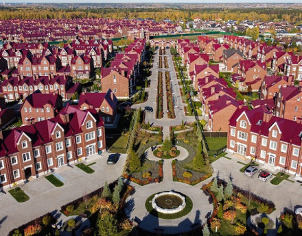 Все они выдержаны в классическом английском стиле, всего поселок рассчитан на 200 домовладений.