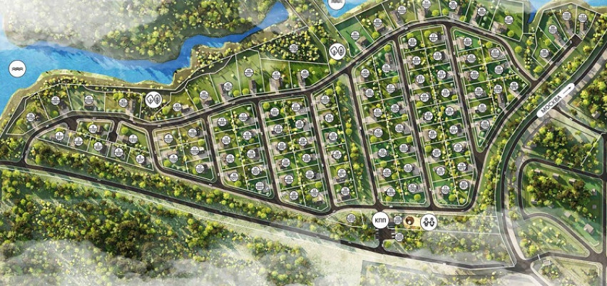 Запланировано несколько очередей строительства, первая — 101 землевладение в обжитом дачном месте рядом с целым каскадом живописных и чистых природных водоемов. Выбор недвижимости впечатляет — от классических «дачных» участков до просторных, в четверть гектара.