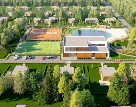 Под общественные зоны поселка отведено около 2 гектар. Продуманная инфраструктура, в том числе, спортивная, позволит обеспечить интересный и разнообразный досуг. Кроме этого, в ближайшей транспортной доступности располагаются популярные спортивные курорты и два гольф-поля, так что новый поселок — удачный вариант для поклонников активного отдыха.