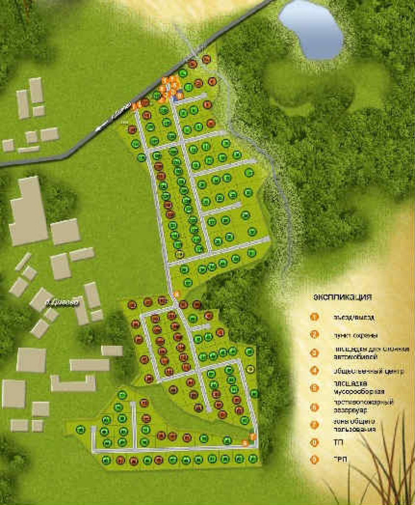 Территория в 17 гектар разделена на 145 участков, размер которых начинается от 6 соток. Участки «Дивово» огорожены, на въезде оборудован КПП.
