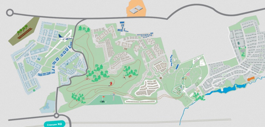 Проект действительно масштабный — первая очередь строительства занимает 228 гектар и рассчитана как минимум на 3000 жителей. Выбор недвижимости впечатляет — это и видовые участки с подрядом или без него, и коттеджи — индивидуальные или сблокированные, и жилье в малоквартирных домах.