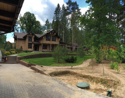На больших, размером почти до гектара, участках «Дом Берендея» не только тщательно сохранены вековые сосны, но и почти все землевладения располагают собственным небольшим озером, так что возможности для работы специалистов по ландшафтному дизайну весьма велики.