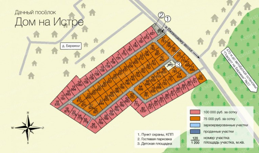 Что касается внешней инфраструктуры, то в ней недостатка не будет — район обжитой и популярный для загородной жизни. Рядом есть несколько довольно крупных населенных пунктов, недалеко и до города Солнечногорска. Кроме этого, в окрестностях работает планерный аэродром, конно-спортивный комплекс и виндсерфинг-клуб, так что поклонникам активного отдыха скучать не придется.