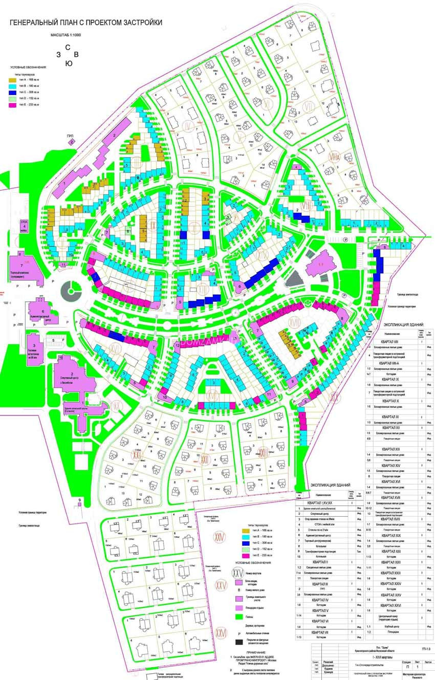 Градостроительные решения и архитектурно-планировочная структура комплекса представлены, как оптимальное сочетание многообразия типов жилых домов (таунхаусы и коттеджи), необходимых административных, культурно-бытовых, спортивно-оздоровительных и воспитательно-учебных сооружений, решенных в стиле ансамблевой архитектуры и своеобразия облика застройки всего жилого комплекса.