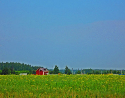 Лес, озеро, транспортная доступность, у поселка остановка общественного транспорта, хорошая дорога до поселка, через дорогу деревня.