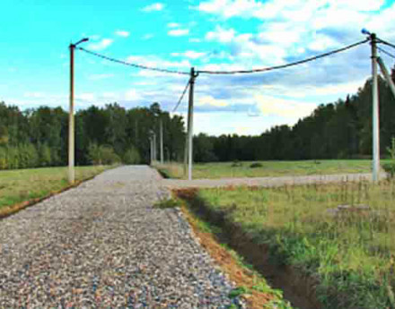 К участкам «Ёлочки» подведено электричество из расчета 12кВт на каждый, проложены внутренние дороги с твердым покрытием, установлено внешнее ограждение.