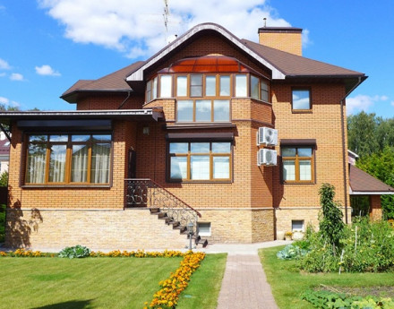 Стены дома возведены из кирпича, крыша отделана металлочерепицей, фасад облицован штукатуркой. Все коттеджи сдаются под чистовую отделку.