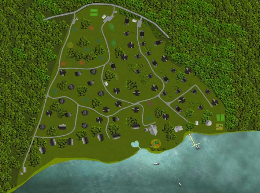 Коттеджный поселок включает в себя зону отдыха и техническую зону. Зона отдыха представлена: благоустроенным пляжем, лодочным причалом и эллингом, спортивной площадкой, детской игровой площадкой.