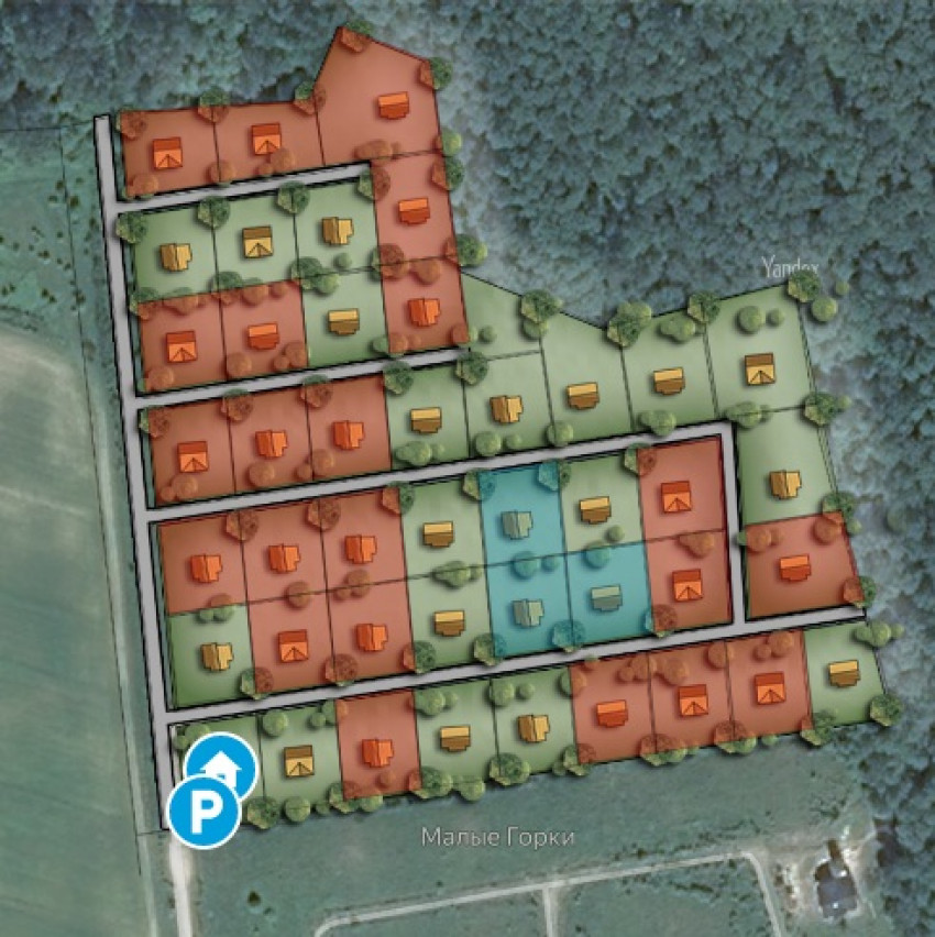Поселок камерный, всего 43 больших, до 15 соток, землевладения, которые предлагаются без обязательного подряда, но со всеми необходимыми для проведения строительства коммуникациями.