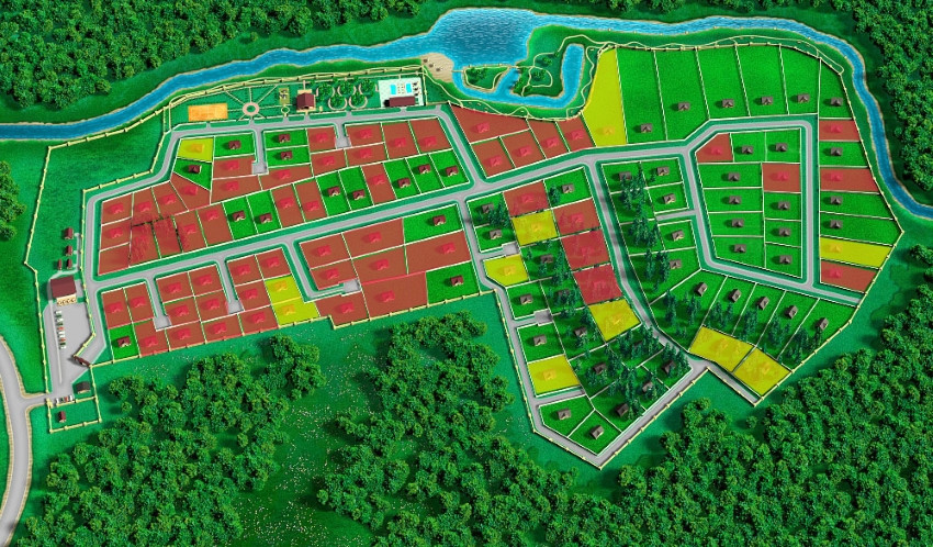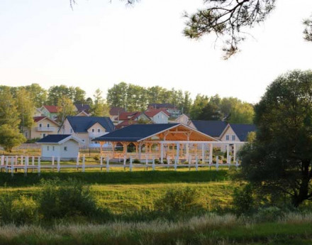 Красивая природа, пение птиц и на этом фоне большие красивые дома, чистая, ухоженная территория, роскошные газоны и клумбы. Поселок живет, хотя еще много свободных участков. Подключены все коммуникации, территория освещается, огорожена и охраняется. На въезде в поселок парковка, несколько магазинов, медпункт. В общем, поселок обеспечен всем нужным для жизни, есть, где отдохнуть и купить необходимое.