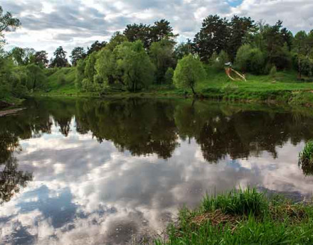 Место для поселка выбрано удачно — в окружении хвойного леса на берегу небольшой речки, притока Лопасни.