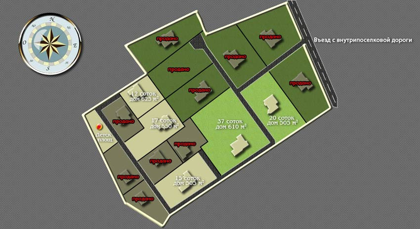 Дома от 300 до 800 м2. Участки от 20 до 50 соток.