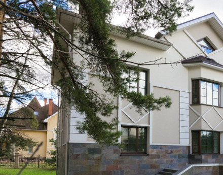 Все дома выполнены в едином архитектурном стиле. Постройки создают атмосферу целостности и естественно вписываются в природный ландшафт поселка. В отделке фасадов использованы натуральные материалы: природный камень, гранит, высокопрочные сорта деревьев.