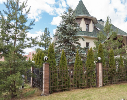 Каждый дом комплектуется автоматическими коваными воротами при въезде на участок и калиткой .При наличии гаража в доме, он комплектуется автоматическими гаражными воротами. Заезд от дороги до гаража и крыльца выложен тротуарной брусчаткой. По внешнему периметру участки огорожены кованым забором.