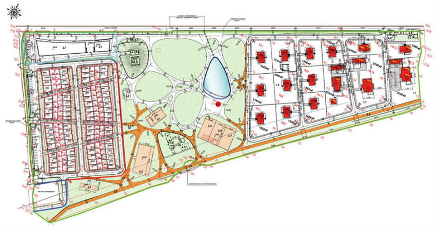 15 индивидуальных кирпичных двухэтажных коттеджей свободной планировки площадью от 355 кв. метров. Размер земельного участка составляет от 13 до 30 соток;