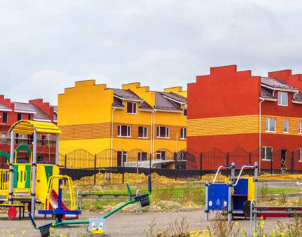 16 сблокированных коттеджей — они двухэтажные с мансардой и также выполнены из кирпича. Площадь — 135-320 кв. метров, размер участка составляет около 3 соток.