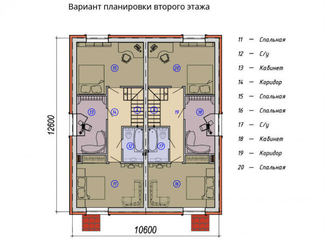 Коттеджи-дуплексы на две семьи, площадь каждой секции составляет 110 кв. метров;
