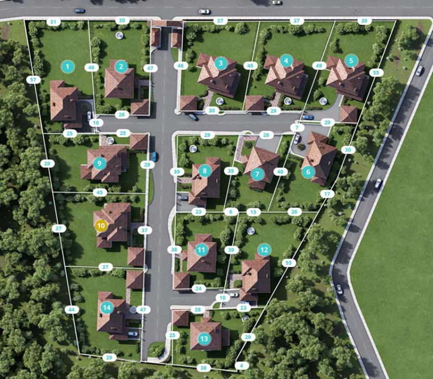 На закрытой, охраняемой территории строится всего 14 кирпичных коттеджей. Три специально разработанных проекта и многообразие фасадных решений исключат «типовую» застройку, позволяя, в тоже время, выдержать единую архитектурную концепцию.