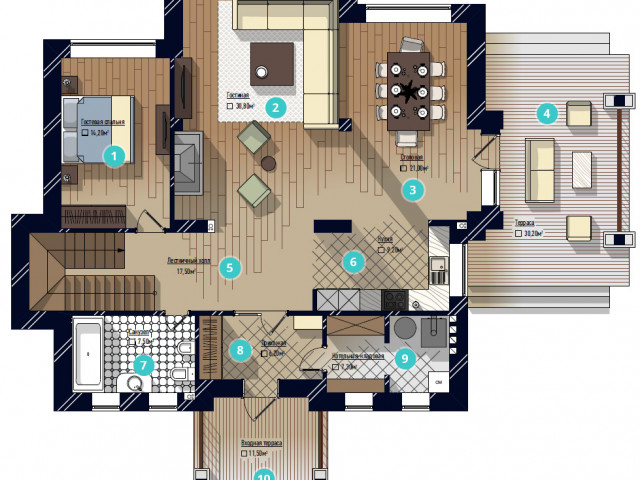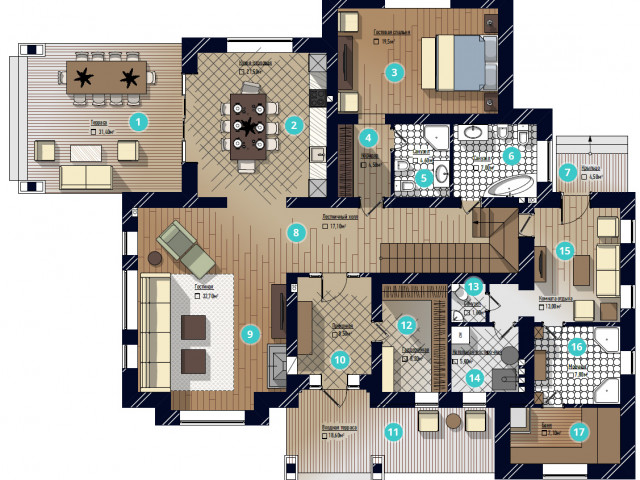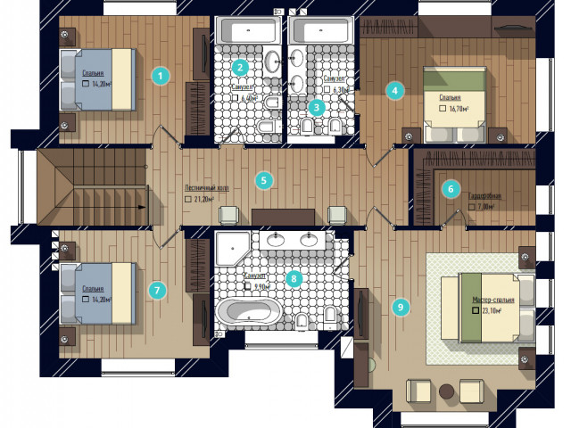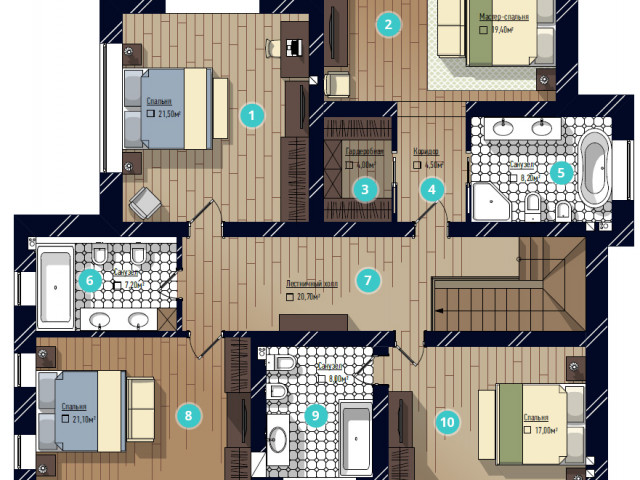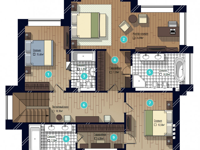 Дома от 250 до 344 м2. Участки от 9 до 15 соток.