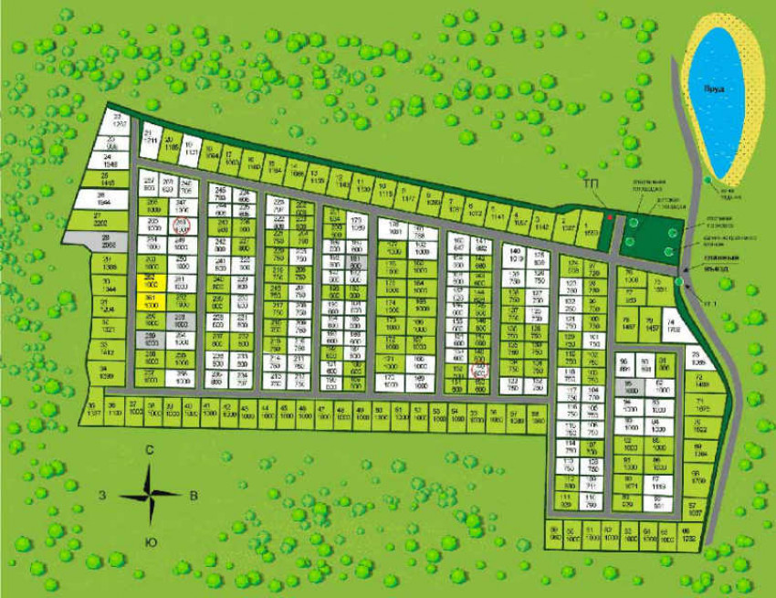 Поселок довольно большой - 31 гектар территории разделен на 268 участков. Размер их оптимальный для дачного строительства — от 7 до 17 соток. Участки ровные, солнечные, прекрасно подходящие для фруктового сада, без которого немыслима дачная жизнь.