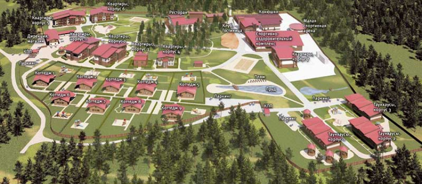 - Инфраструктура: гостевая парковка, детская игровая площадка, зона отдыха, конно-спортивный комплекс, спортивная площадка, фитнес-клуб