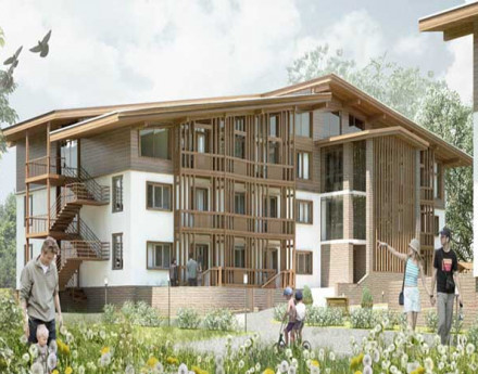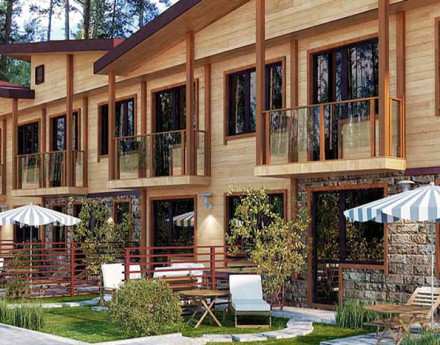 - Сблокированные коттеджи-таунхаусы, площади их составляют от 123 до 130 кв. метров;
