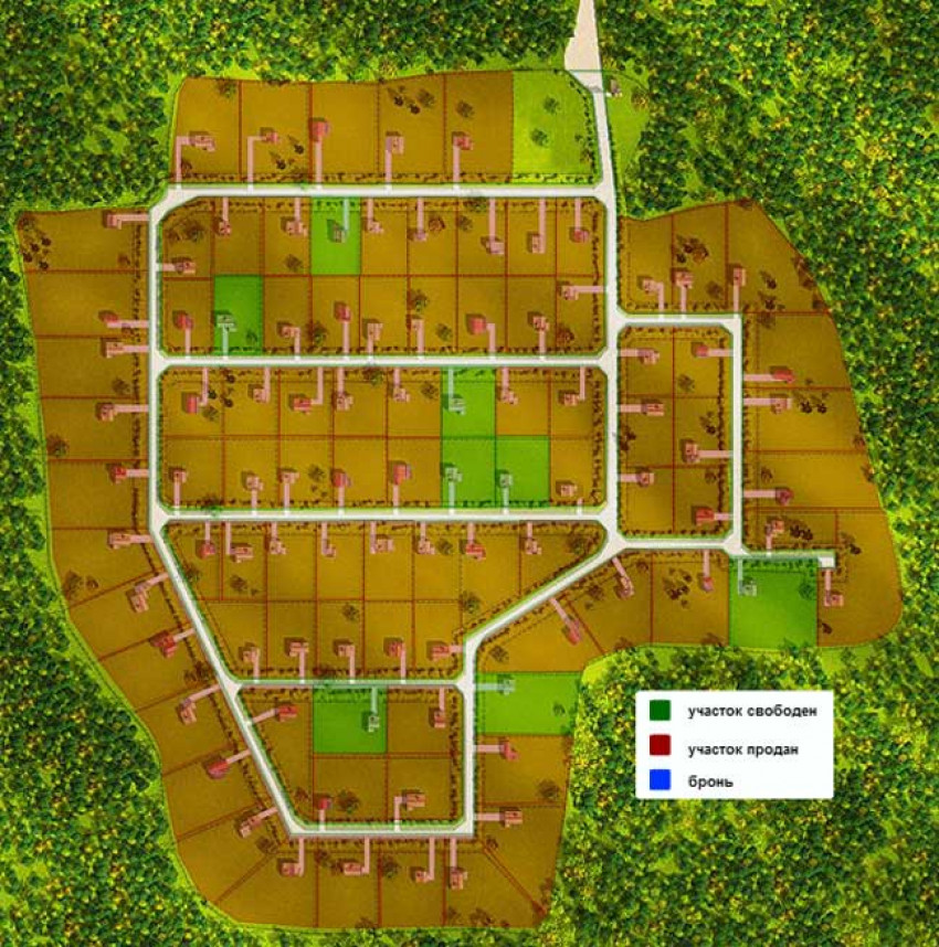 Территория в 21 гектар разделена на 104 землевладения, застройщиком предлагается несколько вариантов приобретения недвижимости: