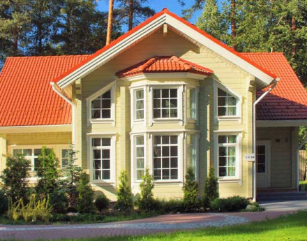 2-этажные 3-уровневые кирпичные дома общей площадью до 950 кв.м снаружи оштукатурены и окрашены. Крыша - металлочерепица.