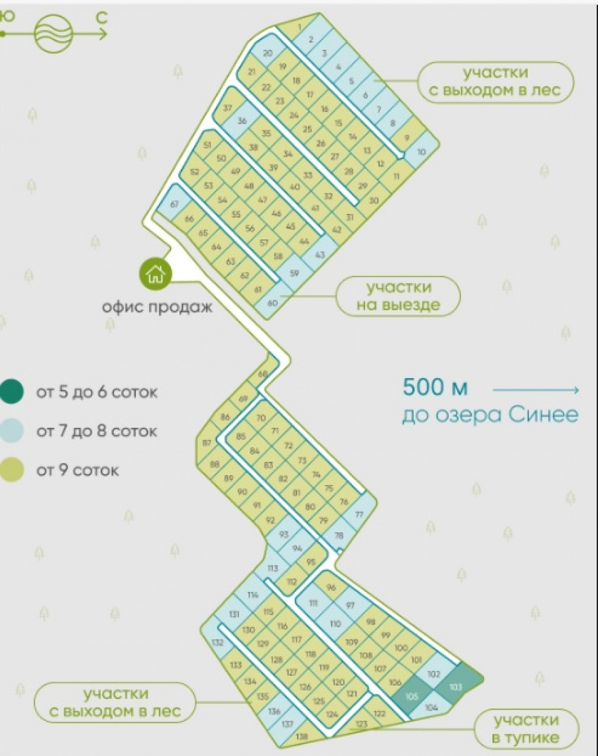 Дома от 33.4 до 136.5 м2. Участки от 5 до 11 соток.