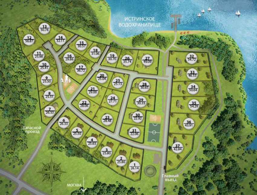 Небольшой поселок расположился на берегу водохранилища в окружении соснового леса. Территория благоустроена: КПП, круглосуточная охрана, ограждение по периметру, коммуникации подведены к участкам. Строить можно по своему усмотрению, без каких-либо ограничений.