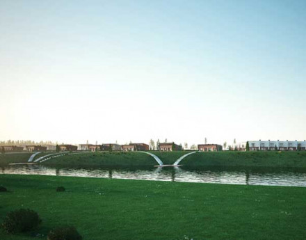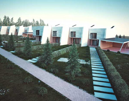 Закрытая охраняемая территория застраивается двухуровневыми кирпичными домами, выдержанными в стиле европейского пригорода.