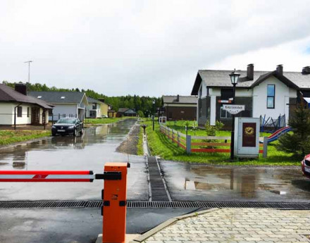 Огороженная территория охраняется, планируется ее благоустройство и строительство инфраструктуры. Здесь будет гостевая парковка, теннисный корт, футбольное поле, детская площадка.