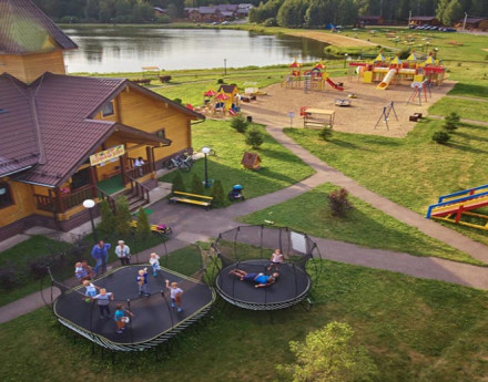 - Инфраструктура: баня, гостевая парковка, детская игровая площадка, зона отдыха, магазин, пляж, ресторан, спортивная площадка, храм