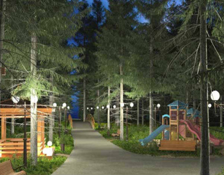 Для семей с детьми предусмотрены школы и детский сад, для каждодневных покупок- магазин, для поддержания формы — физкультурно-оздоровительный центр и спортивные площадки.