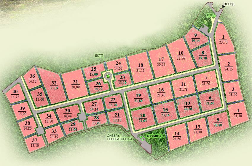 Территория поселка огорожена, находится под охраной. Одним словом, все готово для строительства домов. Кстати, хотя участки и предлагаются без обязательного подряда на строительство, для поселка разработана единая архитектурная концепция, в которой и будут выдержаны все коттеджи.