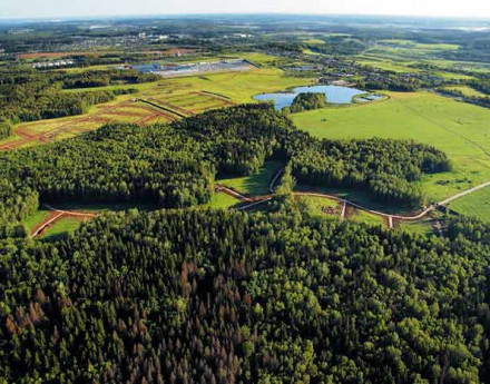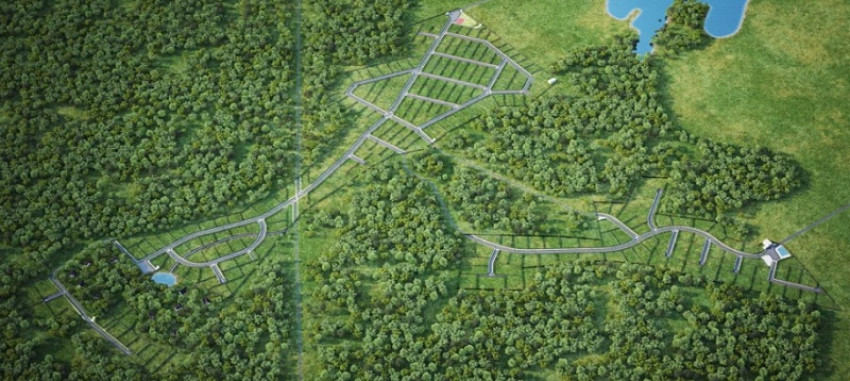 Многие участки с лесными деревьями. Участки обеспечены всеми центральными коммуникациями: электричество, газ, водоснабжение и канализация. Все коммуникации подводятся к границе участков и уже включены в стоимость сотки.