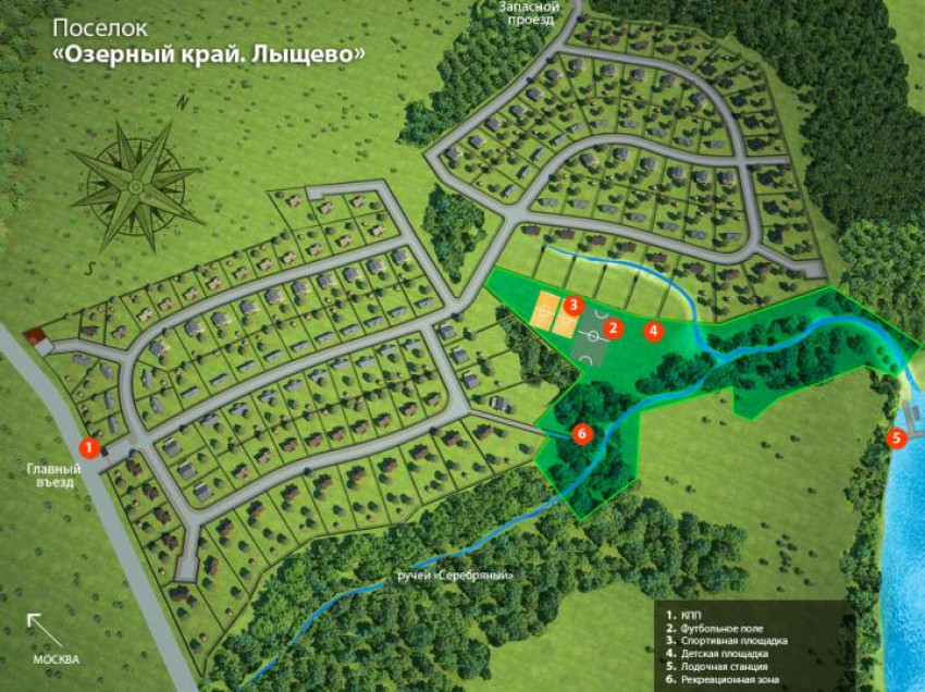 Поселок у воды всегда более интересен, а здесь целое водохранилище. Если застройщик выполнит все, что предусмотрено планом, то поселок будет образцом комфорта и красоты. Участки активно продаются, ведь ко всему прочему, поселок всего в 63 км от МКАД и добраться к нему можно по трем шоссе.