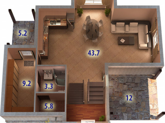 Сдаются они полностью готовыми, с внутренней отделкой и подведенным электричеством, остальные коммуникации автономны: септик, газгольдер, водоснабжение - скважина. В гостиной предусмотрено место для камина. На этапе строительства возможно внесение изменений в планировку.