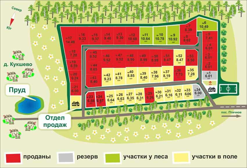 Участки от 6 до 14 соток.