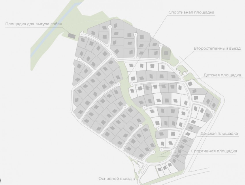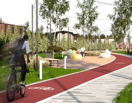 Расположение нового поселка позволяет не перегружать его инфраструктурой, сосредоточив внимание на отдыхе жителей. Здесь предусмотрены спортивные и детские площадки, прогулочные зоны с пешеходными и велосипедными дорожками, места для выгула домашних питомцев. Рядом с КПП будет гостевой наземный паркинг.