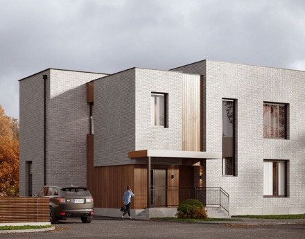 Рассматривал дома здесь. Сразу обратил внимание на эти дома от IND architects. Ребят знаю, команда интересная. Дома вживую вышли даже лучше, чем на рендерах. Сам поселок весь еще в стройке, но готовые прям хорошо выглядят. И еще эта фишка с кирпичом на заказ: будто объемная кладка, интересная история, фактурно. Из серо-белого кирпича в моем топе дома. Цена уже подросла, остались большие площади. Новая очередь должна быть, жду.