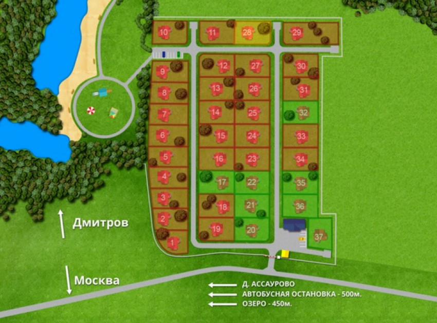 Планами благоустройства предполагается оформление ландшафтных зон отдыха, установка детской и спортивной площадок. Кроме этого, жителям будет доступна инфраструктура населенного пункта Ассаурово, рядом с которым и располагается новый поселок.