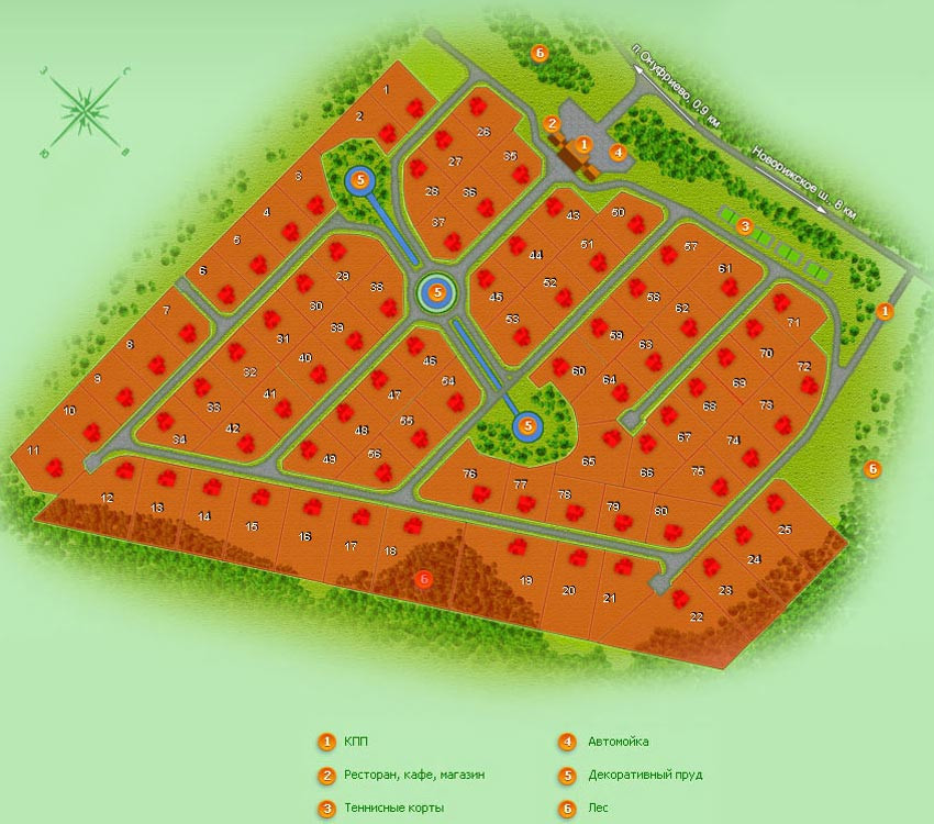 Кроме того, жители поселка смогут воспользоваться инфраструктурой, предлагаемой населенными пунктами, расположенными вдоль Новорижского шоссе.
