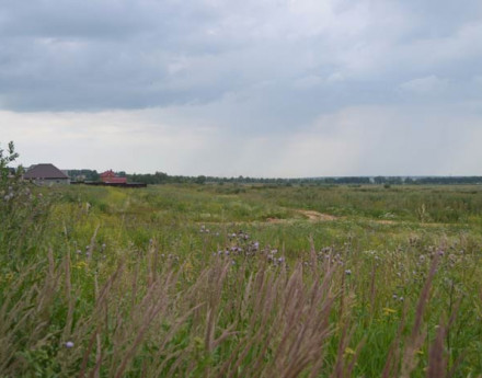Интерес к поселку в его близком расположении к Москве и Москва-реке. Все пока в будущем. А сейчас - поле, на котором ограждена территория поселка и охрана этой территории. До поселка еще ой как далеко.