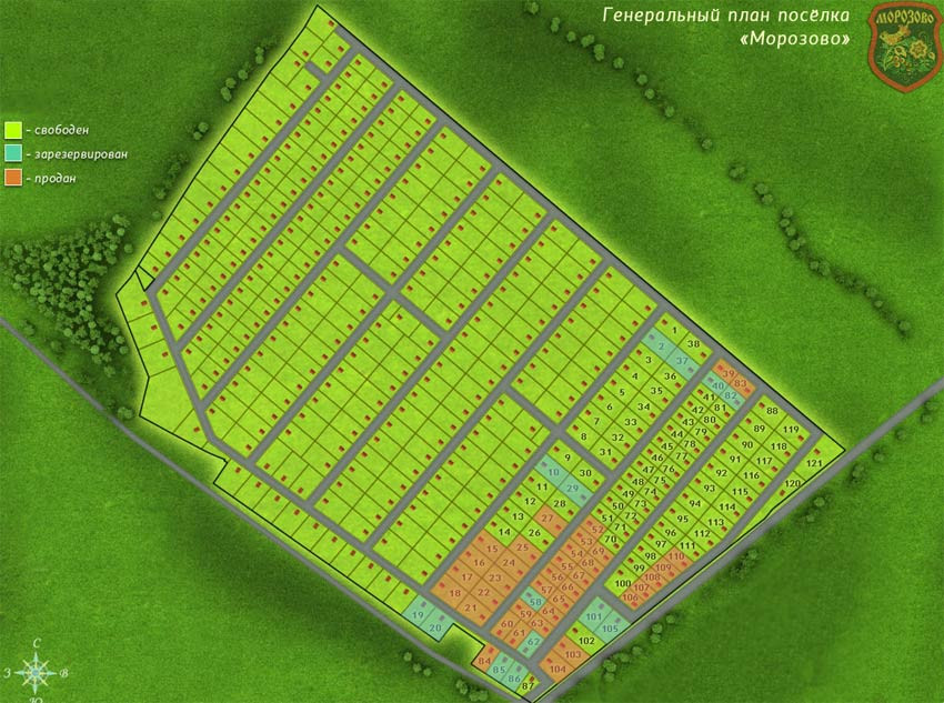 На территории поселка предлагается приобретать участки под застройку. Дом в поселке «Морозово» можно выполнить в любом архитектурном стиле, нет никаких ограничений для фантазии.