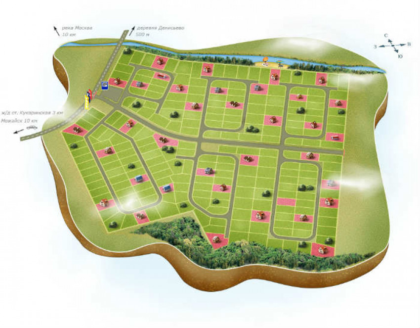 Также жителям доступна инфраструктура населенного пункта Денисьево, расположенного рядом с поселком и города Можайска, до которого всего 10 километров — несколько минут в дороге.
